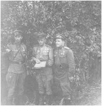 5 Апреля 1945г. Егоров и ближайшие друзья по бокам. Однако когда к исходу 26-го апреля войска 1-го Белорусского фронта подошли вплотную к восточной окраине Берлина, конечная цель, поставленная перед корпусом, была выполнена войсками маршала Советского Союза Г.К.Жукова.