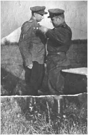 21 Июля 1944г. В день присвоения очередного звания. “С 6 августа 1944г в составе 3 гв. т. бр. 3 гв. т. к. принимал участие в боях за город Борисов, БССР в должности ЗНШ по оперативной части. Получил практический опыт в управлении передовым отрядом (ПО) в оперативной глубине обороны противника, во взятии крупного опорного пункта г. Борисова и преодолении водной преграды р. Березина. Бригада вела успешные бои по преследованию отходящего противника, разгромив наголову колонну танков противника, автомашин и артиллерии протяженностью 12км – от Толочин до автомагистрали в направлении Борисов. За участие в боях в составе 3 гв. т. бр. за освобождение г. Борисова, получил благодарность- от Верховного Главнокомандующего и награжден орденом «Отечественной Войны II-й степени».